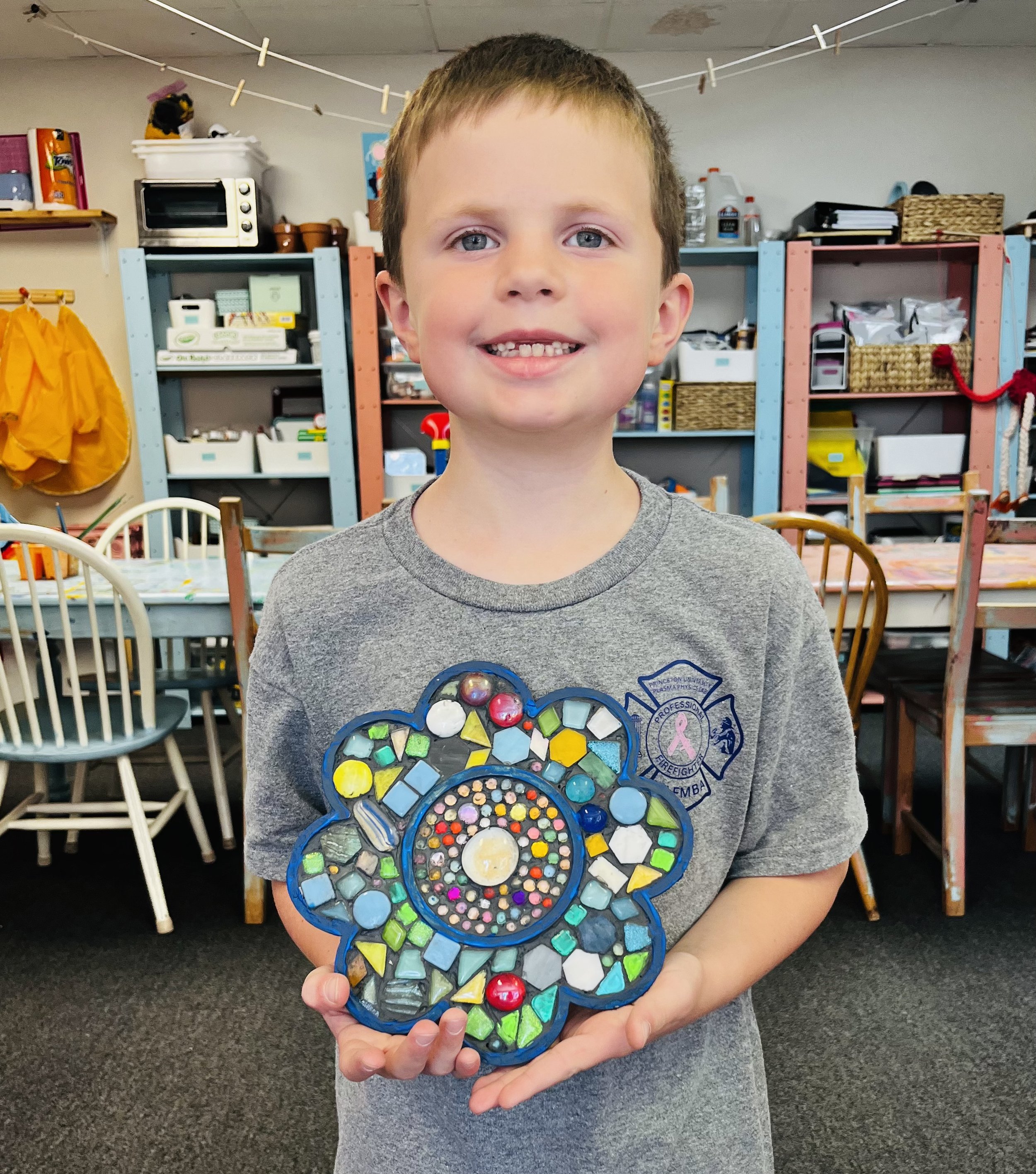 Mosaic Art – Choose a wooden base (butterfly, dinosaur, heart, and more), design with colorful tiles, and finish with grout for a completed masterpiece.