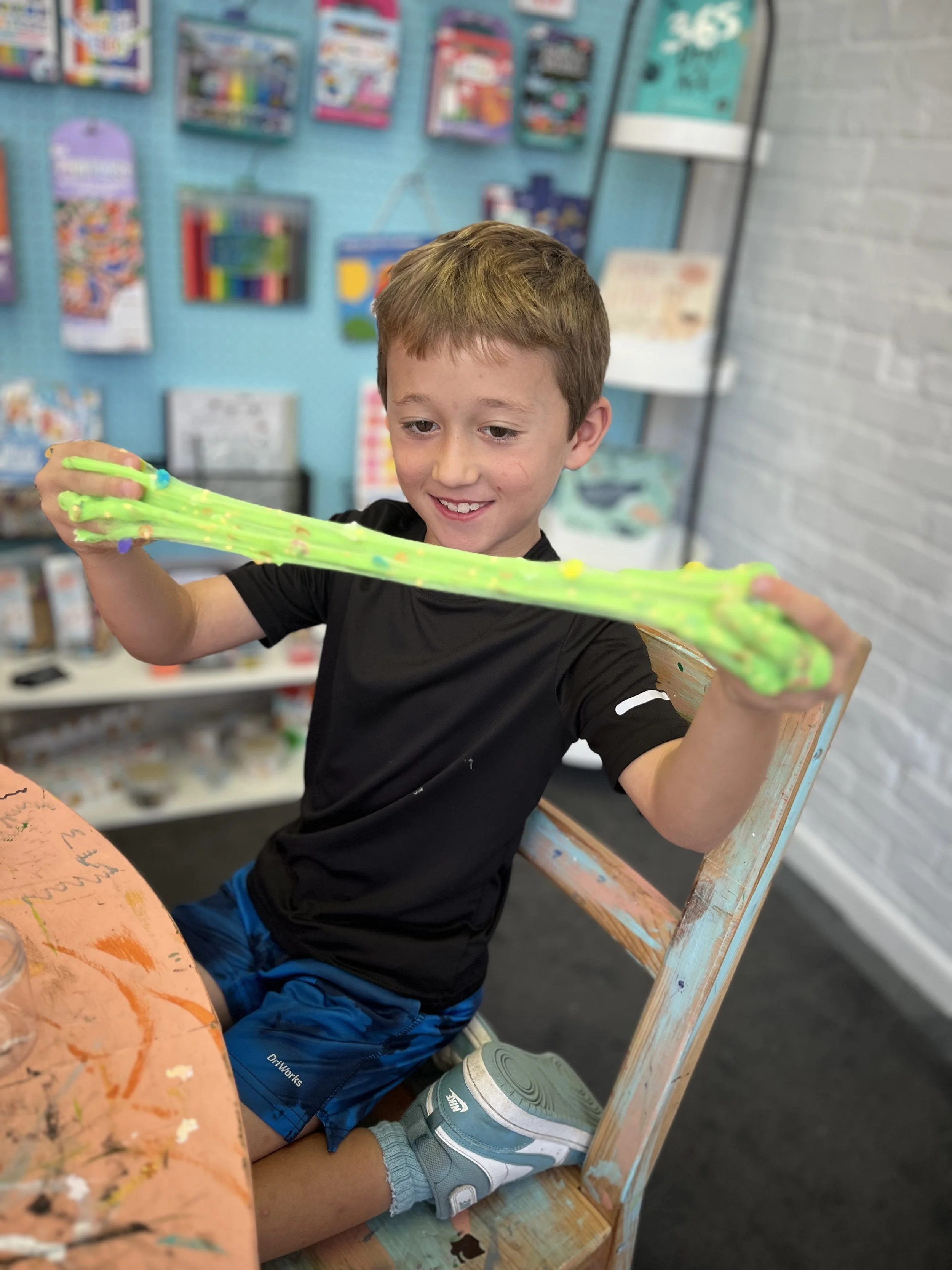 Slime Making – Mix up your own custom slime by choosing colors, glitter, and fun add-ins. Decorate your slime container with stickers and a personalized label.